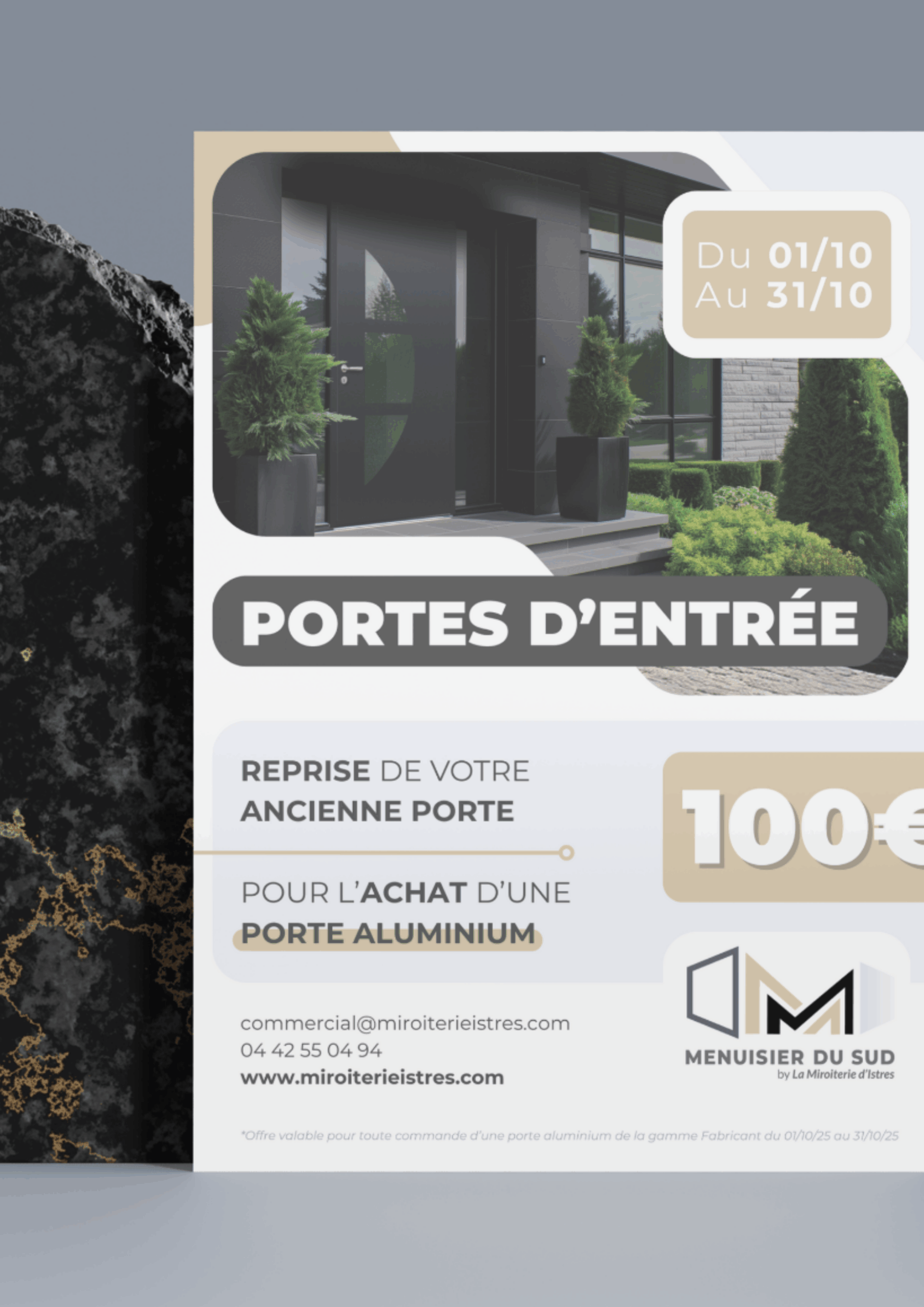 *Offre valable uniquement sur les devis de porte aluminium de la gamme Fabricant du Menuisier du Sud, établis entre le 01/10/25 et le 31/10/25, avec commande validée avant le 31/11/25.